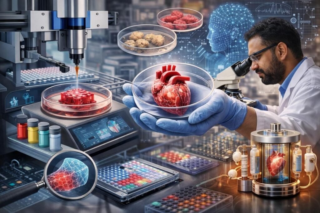 Modern medicine has transformed the way we treat disease, repair tissues, and extend human life. Yet, one fundamental challenge persists: our limited ability to fully restore or replace damaged human tissues and organs. From the global shortage of donor organs to the constraints of synthetic implants, there is a growing need for solutions that go beyond treatment and move toward true regeneration. In this context, 3D bioprinting is emerging as a powerful technology that could redefine the future of healthcare. At its core, 3D bioprinting is an advanced biofabrication approach that enables the precise placement of living cells, biomaterials, and biological signals in a layer-by-layer manner to create tissue-like structures. Unlike conventional 3D printing, which uses plastics or metals, bioprinting relies on “bioinks” which are engineered materials that mimic the natural cellular environment. Over time, these bioprinted constructs can mature into tissue-like systems, offering a unique platform to replicate aspects of human biology outside the body.