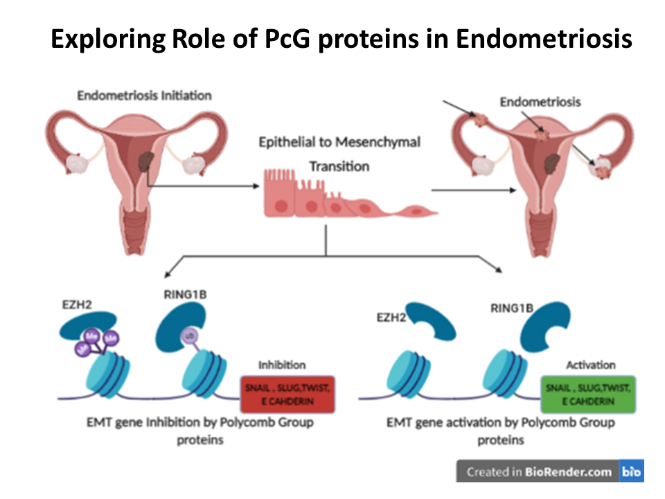 Worldwide there are millions of women suffer from endometriosis, but unfortunately there is no definitive cure for this condition. Our study showed that EMT gene are active in the ectopic tissue (endometrial tissue found in lesions away from the endometrium), and we showed correlation between Polycomb group (PcG) proteins and EMT genes. If future studies confirm this correlation, then the PcG proteins could serve as potential targets for synthetic compounds that are already being used in several clinical trials for treating several types of cancers.