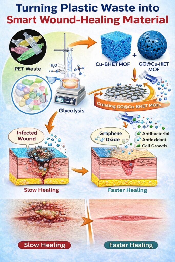 From a scientific perspective, this strategy encourages innovation by treating waste as a chemical feedstock rather than a disposal problem. Converting PET into functional materials such as metal–organic frameworks enables the design of bioactive systems with antibacterial, antioxidant, and tissue-compatible properties. This expands the scope of materials science while supporting circular economy principles.